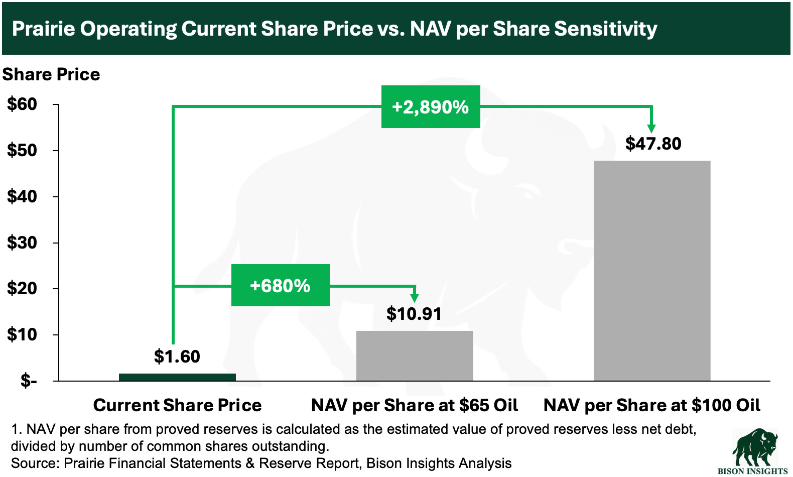 As I mentioned in the introduction, the value proposition here is simple: Prairie has a proved reserve base that is worth over a billion dollars at $65 WTI, but trades at a market cap of less than $100 million. In a “higher for longer” oil price environment, the upside to the equity is much more: