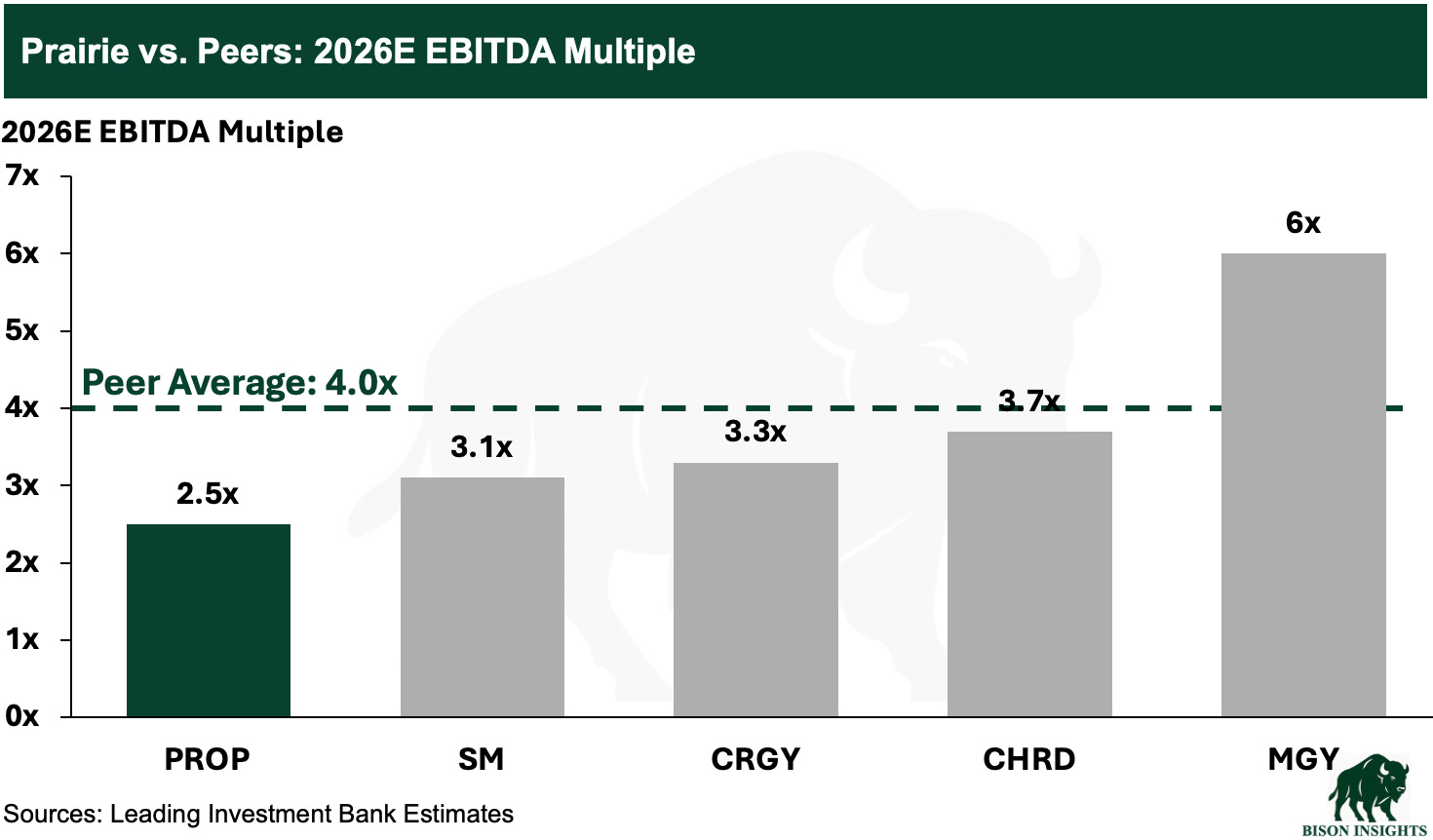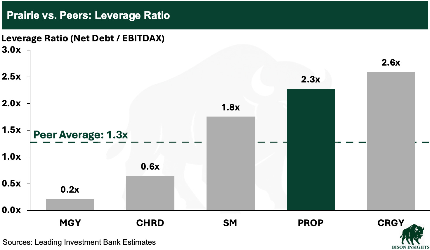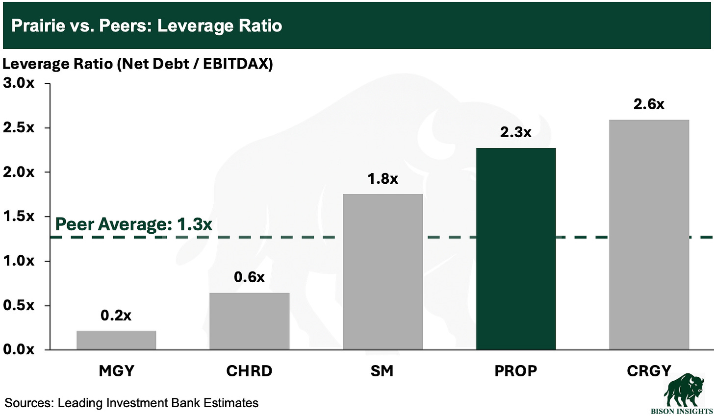 Prairie should use the cash it’s generating to begin reducing leverage, which is not extreme relative to peers: