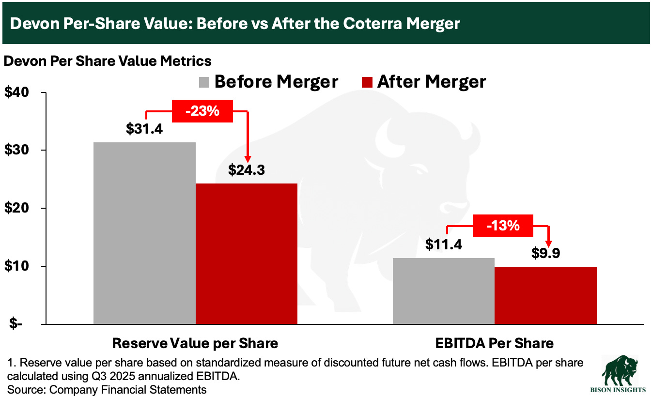 The result is that Devon shareholders are being diluted on key cash flow and reserve value metrics: