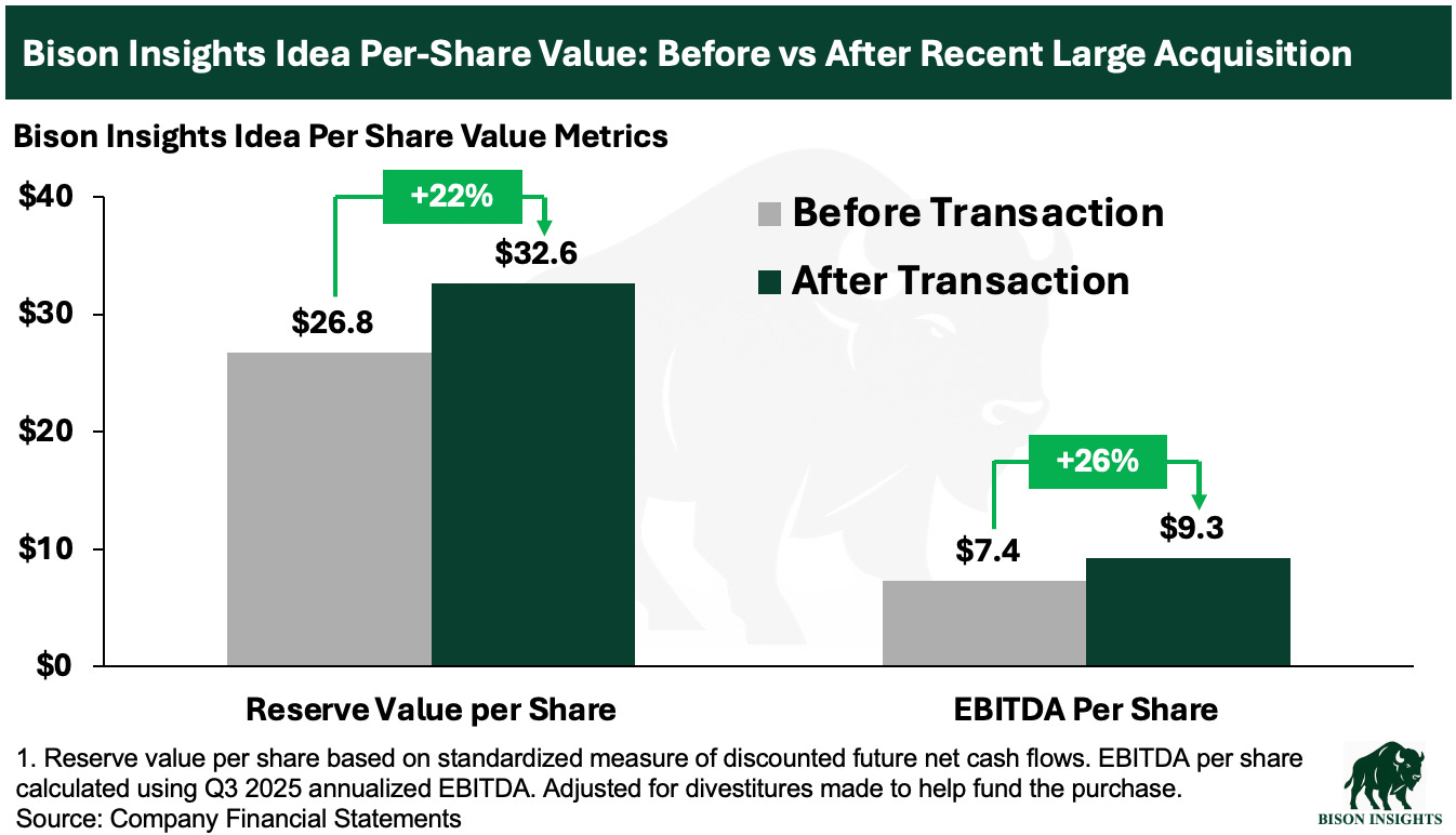 One year prior to this most recent transaction, the company also completed an accretive, natural gas-focused acquisition at the depths of the gas cycle in mid-2024, taking advantage of extremely depressed prices to execute a textbook “buy low” acquisition.