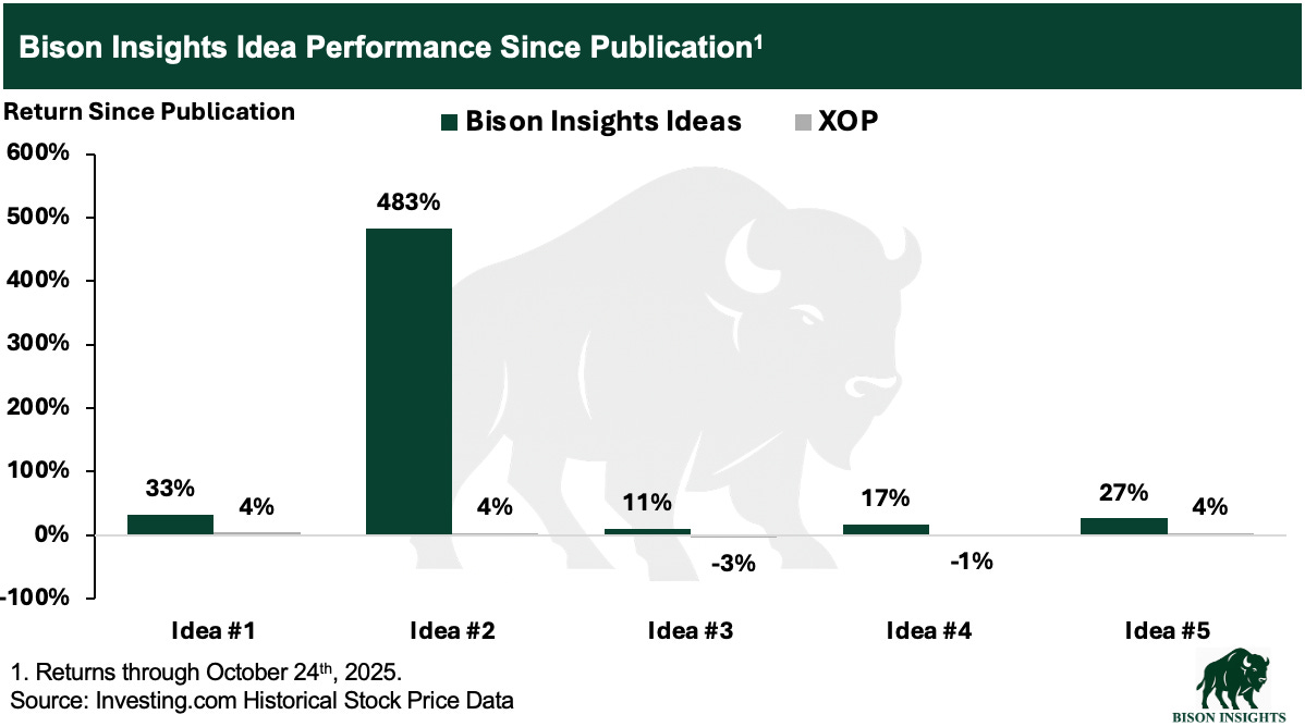 Each idea has outperformed the broader energy market as measured by the Oil & Gas Exploration & Production ETF (XOP) since publication: