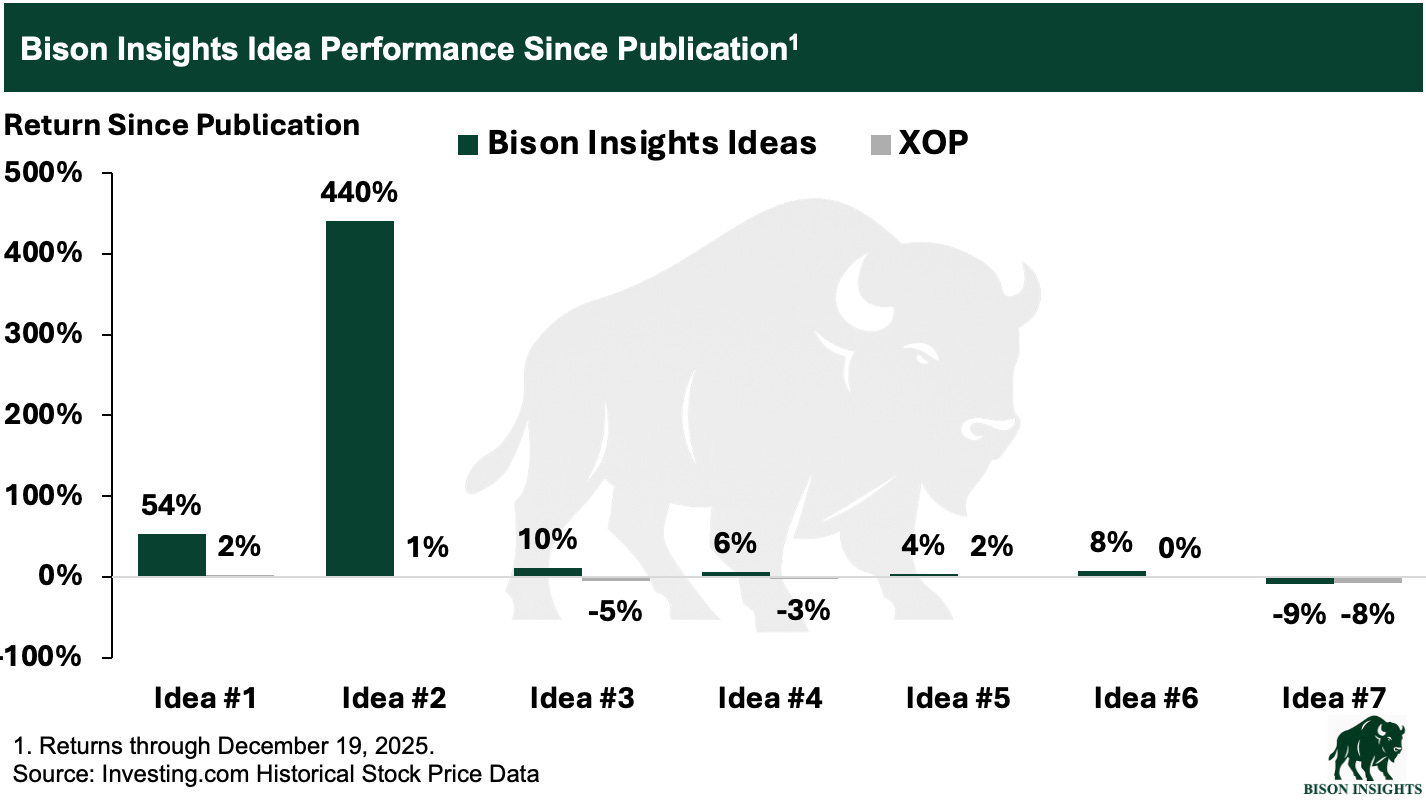 When I first considered launching Bison Insights, my original thought was to focus exclusively on high-upside, high-risk ideas. The concept was “10x potential ideas at $100 oil.”
