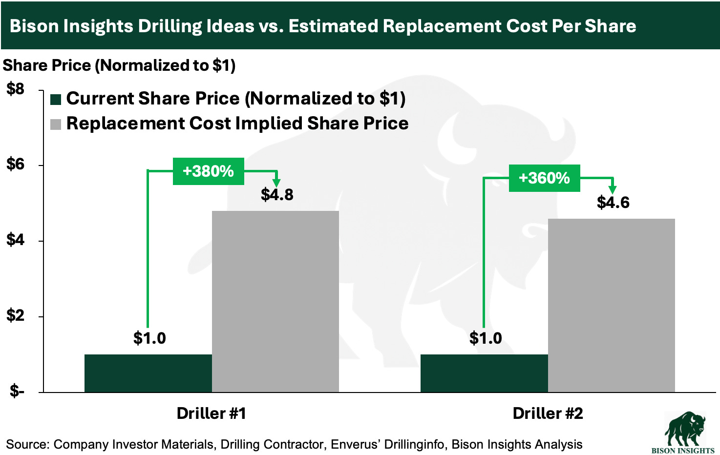 That’s why I continue to think the two pure-play drillers I’ve written about on Bison Insights are very compelling here, as are other ancillary beneficiaries. If we’re in the early stages of a multi-year drilling upcycle, I don’t think current valuations come close to reflecting that setup.