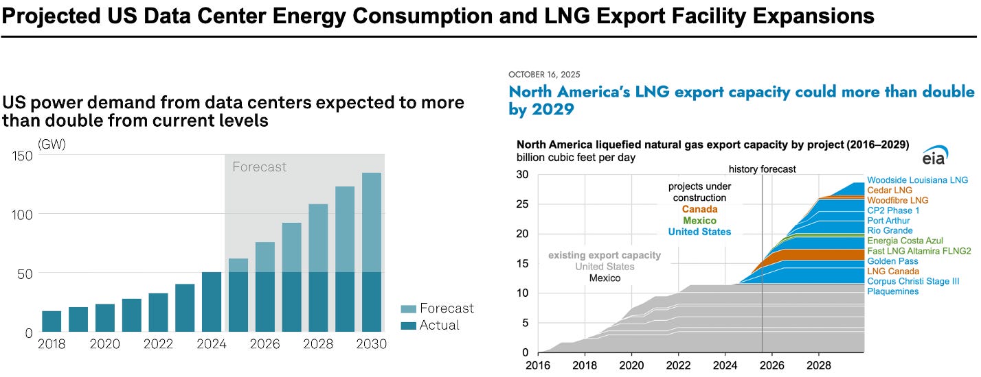 On the natural gas side, North America is facing unprecedented demand growth over the next several years, driven by LNG export capacity expansions and rising electricity needs from AI data centers: