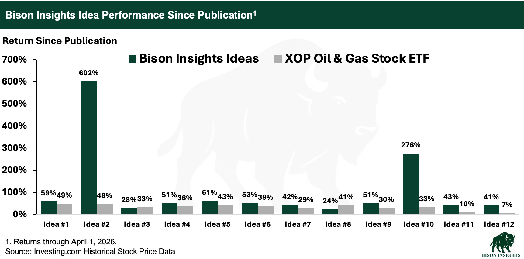 In this article, I examine these questions and their implications for the producers and oilfield services companies I’ve discussed on Bison Insights. These ideas have performed well so far, and they potentially have lots of room ahead to run: