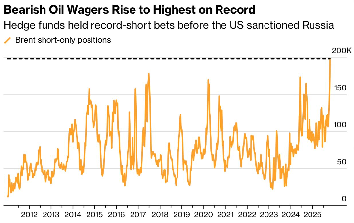 At the same time, bearish oil wagers were recently at record highs, suggesting this potential “glut” is already priced in. Extreme bearish market positioning limits downside risk and sets up high upside potential if sentiment swings the other way.