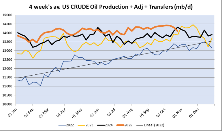 Today that cushion is largely gone. The barrels that once lived in spare capacity are now in production, and what remains is thin at best, as I’ve highlighted before in my work on OPEC+’s spare capacity. The per barrel trade-off between higher OPEC+ production and lower spare capacity may not be perfectly one to one, but it should be close: if the market discounted price for years because spare capacity reduced risk on the upside, then a meaningful reduction in that buffer should lift price by removing that insurance.