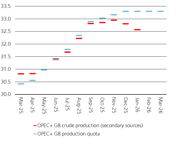 Meanwhile, OPEC+ production appears to be faltering, with output declining over the past several months despite increases in official production quotas.