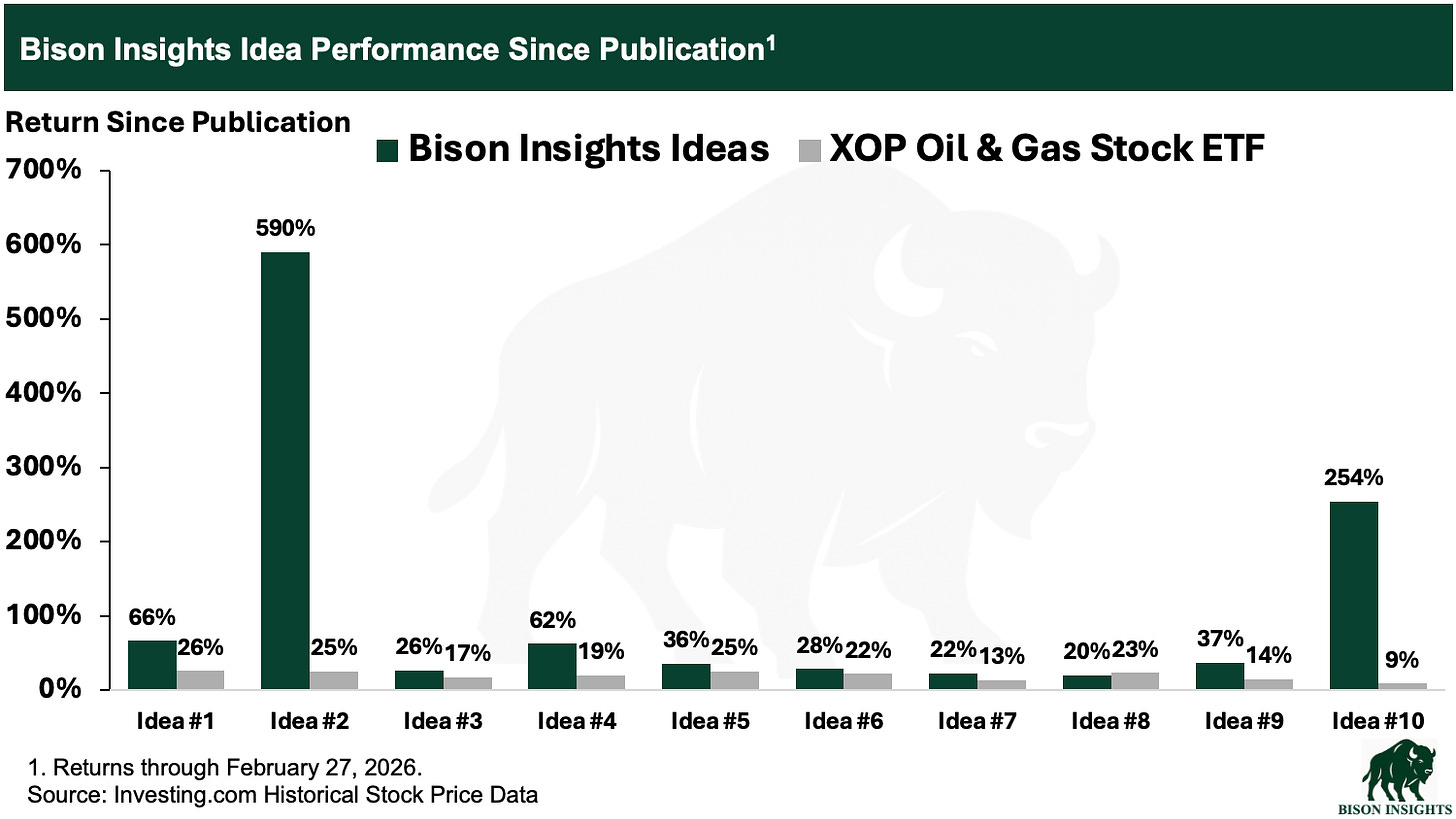 On the call, I’ll provide a brief oil market fundamental backdrop, along with my assessment of weekend developments in the Middle East, which I’ve been following closely, and their implications for oil markets and the several Bison Insights ideas I’ve shared with high oil price leverage.