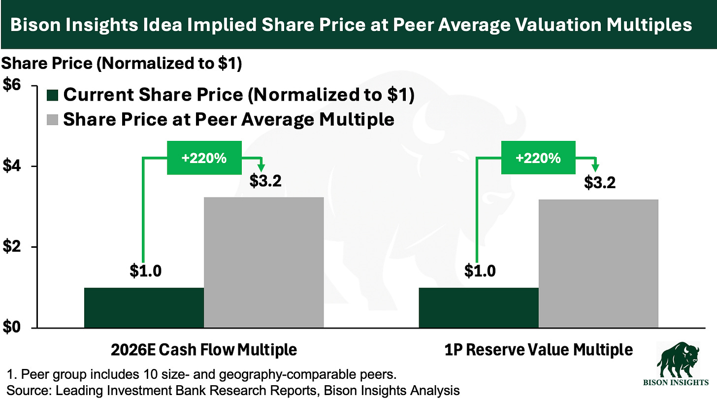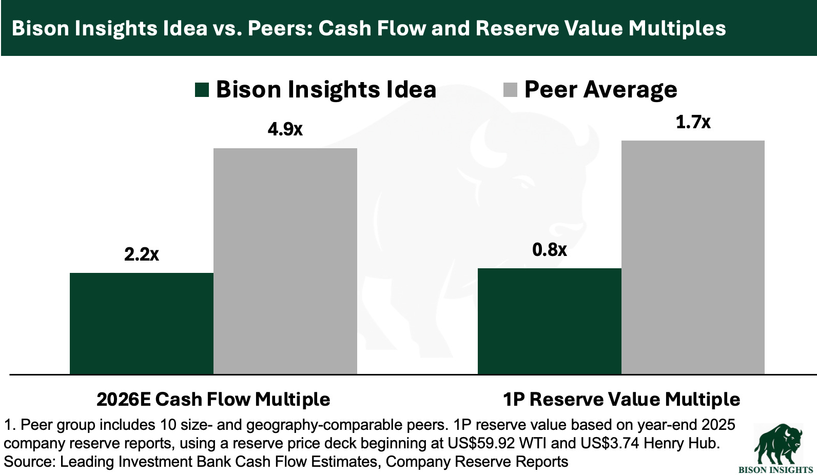 I agree. As this company continues to prove out its turnaround, reduce debt, and repurchase shares, the market should gradually narrow the valuation discount and may eventually assign the stock a premium multiple. If its stock were to merely rerate to the peer average cash flow or reserve multiple, the upside would be compelling: